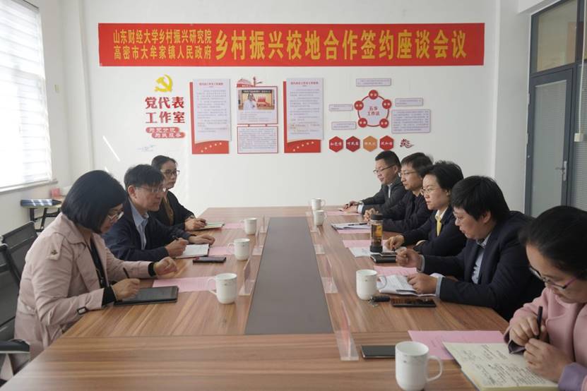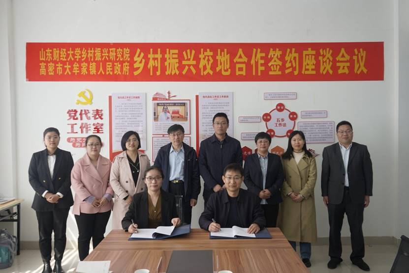 董院长介绍了乡村振兴研究院在学术研究、决策咨询、人才培训、实践调研等方面的工作情况,并对本次校地合作表达了期望与支持。大牟家镇党委书记阎廷玉代表大牟家镇与山东财经大学乡村振兴研究院签订了合作意向书。